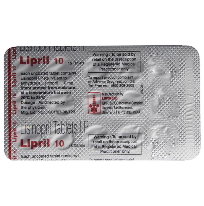 Lipril 10 Tablet can be prescribed either alone or in combination with other medicines. It may be taken with or without food but try taking it at about the same time each day. It is important to continue taking it regularly even if you feel well or even if your blood pressure is controlled. Most people with high blood pressure do not feel ill, but if you stop taking this medicine, your condition could get worse. This medicine is considered safe for long-term use.