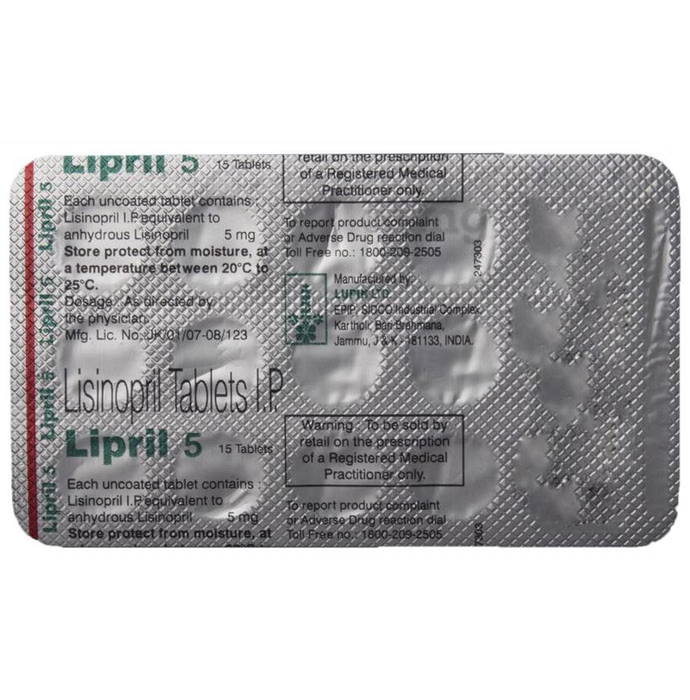 Lipril 5 Tablet is widely used to treat high blood pressure and heart failure. It may also be prescribed after a heart attack. Additionally, it also lowers the chances of having a heart attack or stroke.